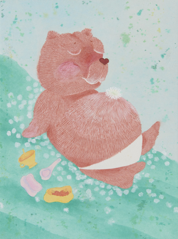 작품설명 저의 한 살배기 딸과 두 살배기 아들은, 언제나 배가 가득 차 있습니다. 엄마와 아빠의 사랑을 듬뿍 받아, 맛있게 많이 먹고, 행복해서 배가 가득 찬 것입니다. 그 따뜻하고 충만한(만족스러운) 기분이 아이들의 일생 동안 계속되기를 바라는 마음을 담아, 두 아이의 모습을 그렸습니다.