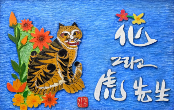 | 작품설명 | 이 작품은 나무에 새겨서 채색한 서각(書刻) 작품입니다. 푸른 배경 위에 용맹하고 익살스러운 호랑이가 늠름하게 자리하고 있습니다. 호랑이는 예로부터 우리 민화에서 나쁜 기운을 물리치는 영험한 동물로 여겨졌습니다. |
