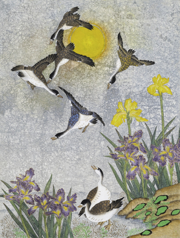 | 작품설명 | 호분작업을 통해 크랙주고 기러기는 평안. 붓꽃은 고결함과 길상을 상징하며 남은 삶을 평안하게 살고자 하는 염원을 담았습니다. |