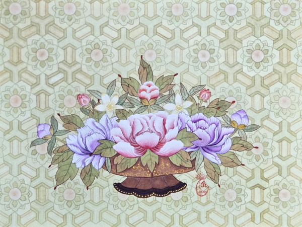 | 作品説明 | 「丹青小花図(たんちょうしょうかず)」は、 作家の修行の場であり信仰の対象でもある 「寺院」の芸術的精髄を凝縮して表現した作品です。 宗教美術が持つ崇高な秩序と静謐さを伝え、 観る者の心に俗世の喧騒を忘れさせる深い安らぎと 感動をもたらします。 宗教性と芸術性が完璧に融合した秀作です。 |
