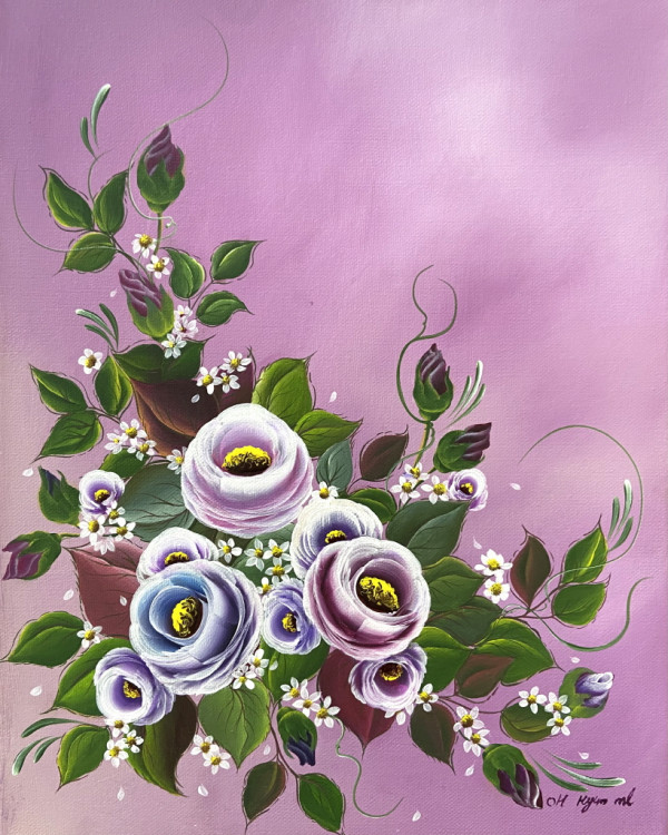 | 作品説明 | 「紫のささやき(ボラッピッ ソクサギム)」という詩的な題名のもと、花というモチーフを通して神秘的でロマンチックな理想世界の一片を描き出した作品です。精緻な装飾技法と洗練された色彩感覚が際立ち、空間に優雅で幻想的な雰囲気を満たします。 |